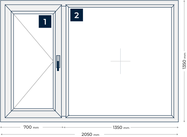Прозорец от две части с едно отваряемо крило: