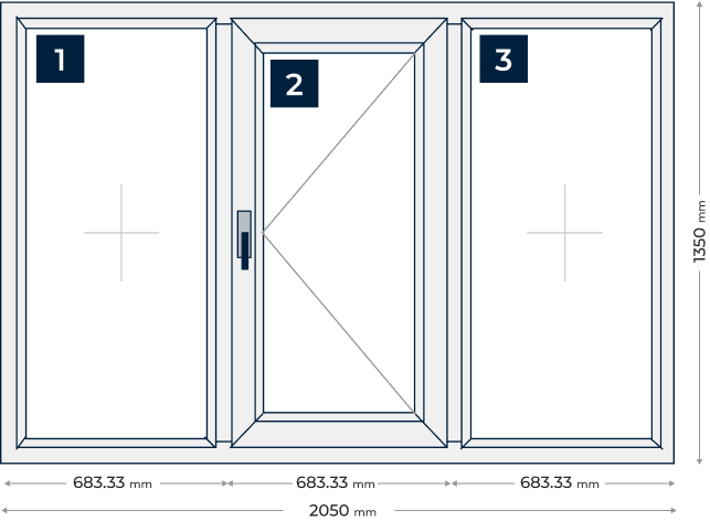 Прозорец от три части с едно отваряемо крило: