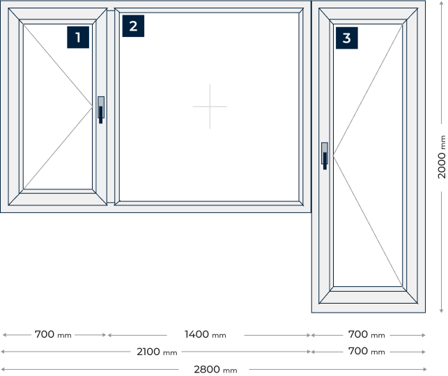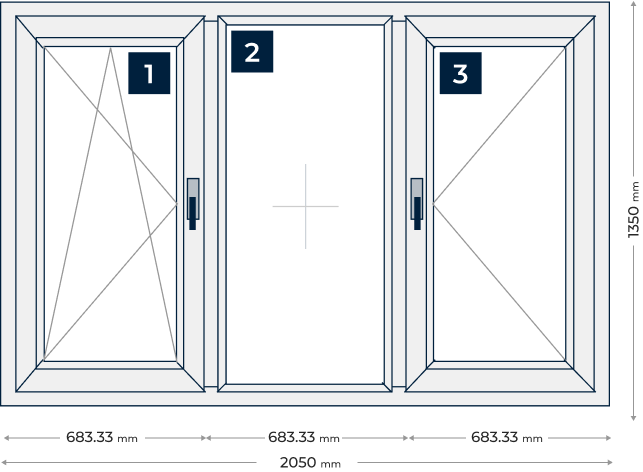 Прозорец от три части с две крайни отваряеми крила: