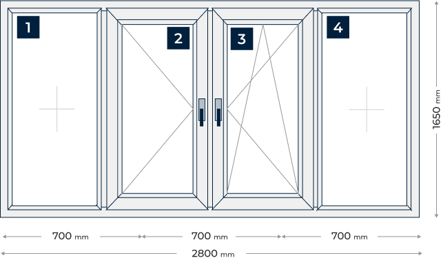 Прозорец от четири части с две средни отваряеми крила: