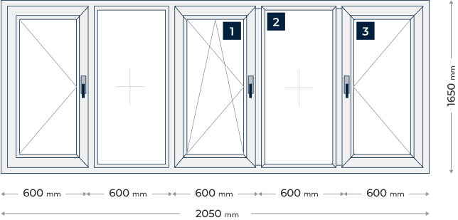 Прозорец от пет части с три отваряеми крила: